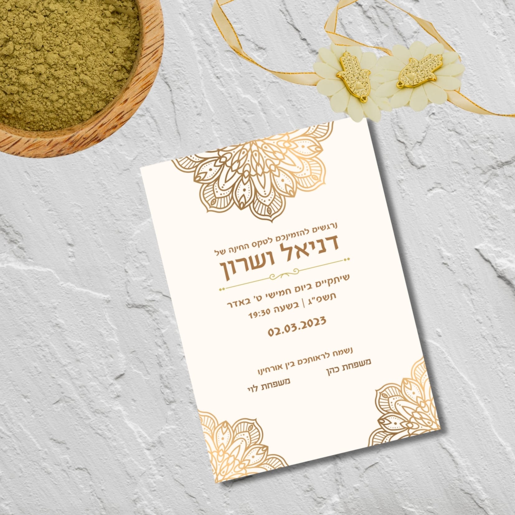 העיצוב יבוצע על פי הפרטים שתמסרו לנו, עם תשומת לב מלאה לכל מילה ולכל פרט קטן, כדי ליצור הזמנה אלגנטית ומוקפדת שתשדר בדיוק את האווירה שאתם רוצים.