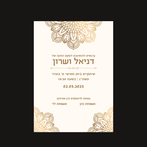 הזמנה לחתונה "דגם מנדלה שמנת"