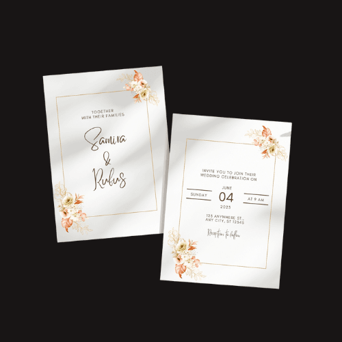 העיצוב יבוצע על פי הפרטים שתמסרו לנו, עם תשומת לב מלאה לכל מילה ולכל פרט קטן, כדי ליצור הזמנה אלגנטית ומוקפדת שתשדר בדיוק את האווירה שאתם רוצים.