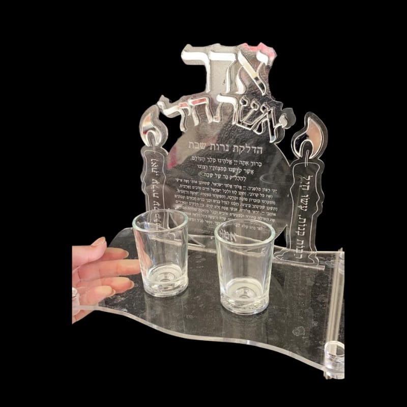 - מקום מותאם לנרות של שבת: המעמד מגיע עם כוסיות זכוכית המיועדות להדלקת נרות שמן , המעמד כולל חריטה של ברכת הנרות בגב המעמד.